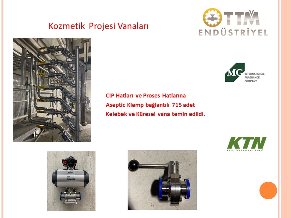 Kozmetik Tesisi CIP, Proses ve Yardımcı Hatlara aşağıdaki vanalar teslim edilmiştir.